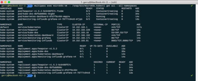 multipass exec microk8s-vm -- /snap/bin/microk8s.kubectl get all --all-namespaces