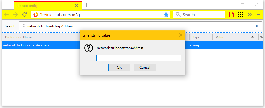 步骤4:第三个设置是可选的,你可以跳过此设置。 但是如果设置不起作用,你可以使用此作为步骤 3 的备用。该选项名为 network.trr.bootstrapAddress,它是一个输入字段,用户可以输入步骤 3 中兼容 DoH 的 DNS 解析器的 IP 地址。对于 Cloudflare,它是 1.1.1.1。 对于 Google 服务,它是 8.8.8.8。 如果你使用了另一个 DoH 解析器的 URL,如果有必要的话,你需要追踪那台服务器的 IP 地址并输入。