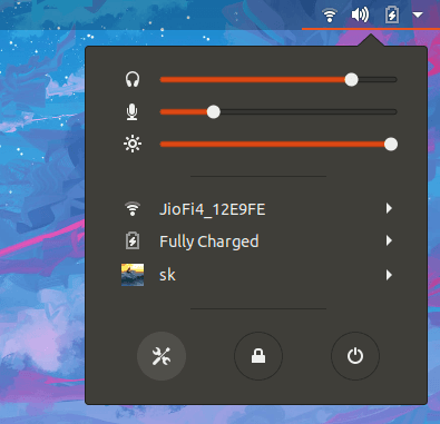 或者,单击位于 Ubuntu 桌面右上角的向下箭头,然后单击左上角的“设置”图标。