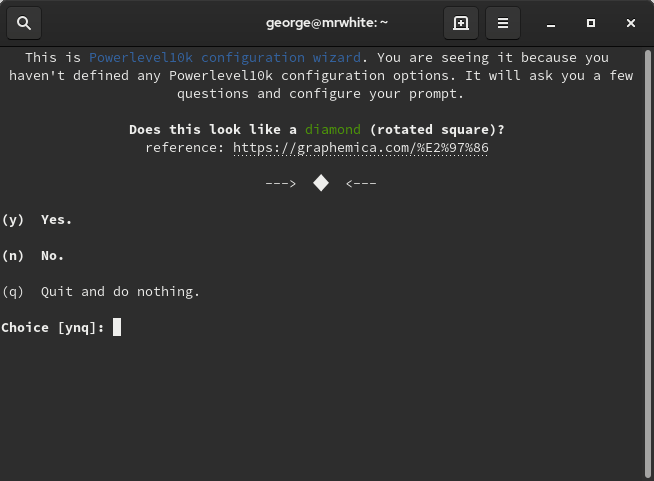 关闭终端。再次打开终端时,powerlevel10k 配置向导将询问你几个问题以正确配置提示符。