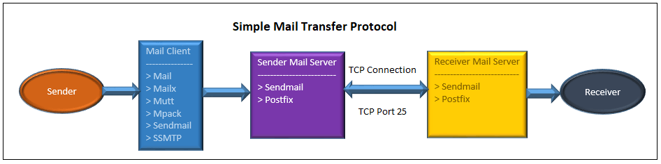 我先从整体上来解释下 Linux 中邮件命令怎么把邮件传递给收件人的。邮件命令撰写邮件并发送给一个本地邮件传输代理(MTA,如 sendmail、Postfix)。邮件服务器和远程邮件服务器之间通信以实际发送和接收邮件。下面的流程可以看得更详细。