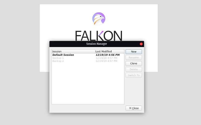 Falkon 在浏览器菜单的可用选项中包含了一个有用的会话管理器。你可以用它还原特定的近期会话,这应该能派上用场。