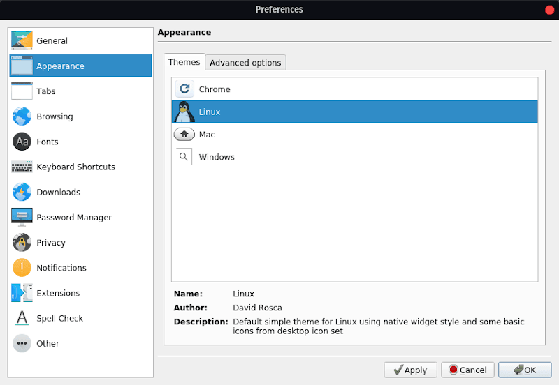 Falkon 还允许你在某种程度上自定义外观。如果要更改浏览器的外观,可以尝试一下。