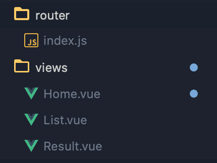 在思考情况后,接下来我们来创建 Router 和 Page。首先,删除 views 下的 About.vue(因为这个页面我们不需要)。然后创建 List.vue 和 Result.vue ,用作后续的开发准备。