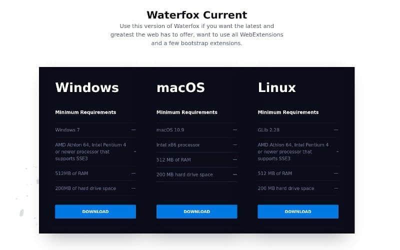 因此,我将在此处的列表中突出显示 Waterfox 的所有重要功能。