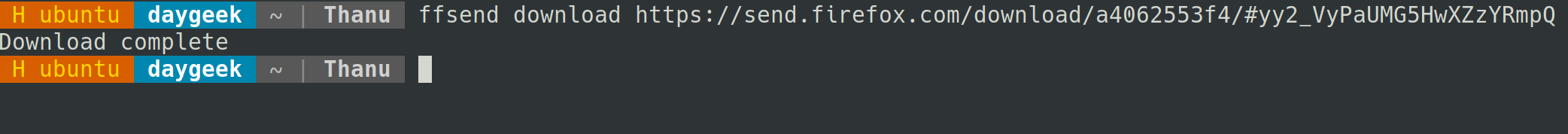 $ ffsend download https://send.firefox.com/download/90aa5cfe67/#hrwu6oXZRG2DNh8vOc3BGg You're downloading an archive, extract it into the selected directory? [Y/n]: y Extracting... Download complete