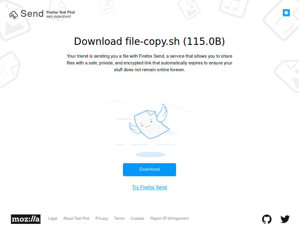 通过 Firefox 的 Send 服务共享的文件最大大小为 2GB(LCTT 译注:现在官网上写的是最大 1GB,登录后最大 2.5GB)。其他人可以通过这个工具或者网页浏览器来下载这些分享的文件。