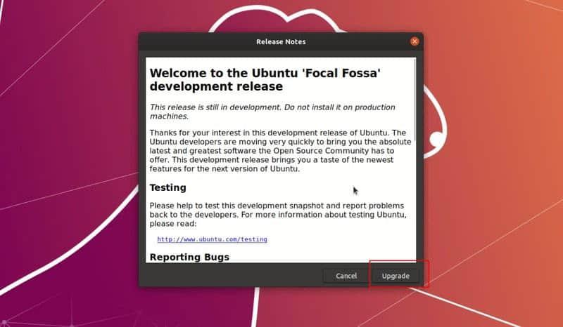 步骤 4:开始升级到 Ubuntu 20.04 beta