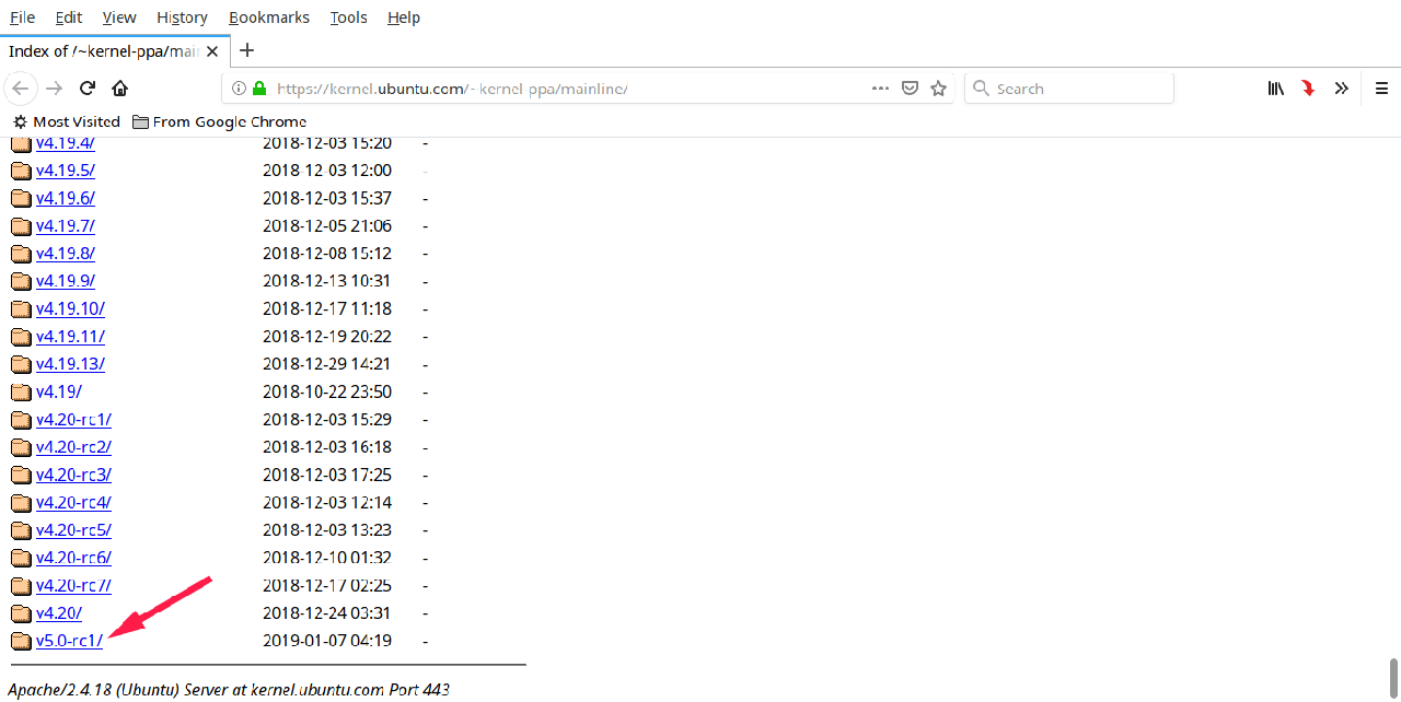 这个方法可以帮助你从 kernel.ubuntu.com 网站手动下载可用的最新 Linux 内核。如果你打算安装最新版(而不是稳定版或者正式发布版),那这种方法对你会很有用。从以上链接下载 Linux 内核版本。编写这个指南的时候,最新的可用版本是 5.0-rc1,最新的稳定版是 v4.20。