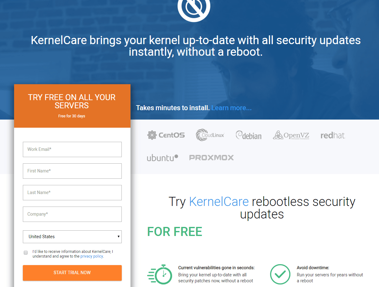 在 https://cloudlinux.com/kernelcare-free-trial5 获取一个 30 天免费试用密钥。