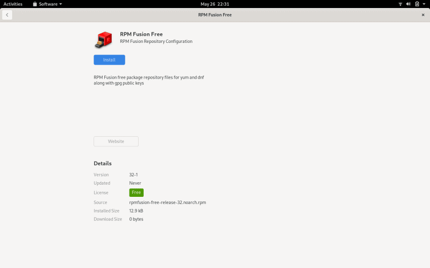 这是可选步骤,但建议这样做。添加 RPMFusion 仓库时,你可以访问常规仓库中不可用的多媒体包。