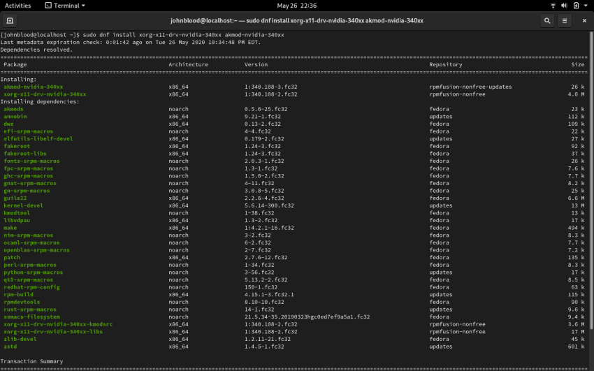 与大多数 Linux 发行版一样,Fedora 并未默认安装专有的 Nvidia 驱动。