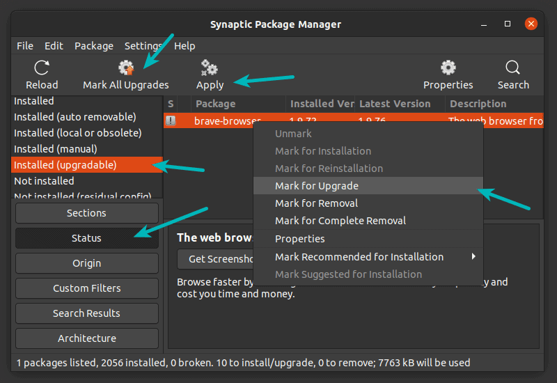 通常,当你更新 Ubuntu 时,所有的软件包都会同时更新。使用 Synaptic,你可以轻松地选择你需要更新/升级到较新版本的软件包。