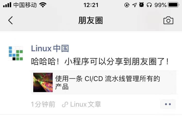 昨天看到一个令人振奋的消息,小程序现在开始测试分享到朋友圈的功能。