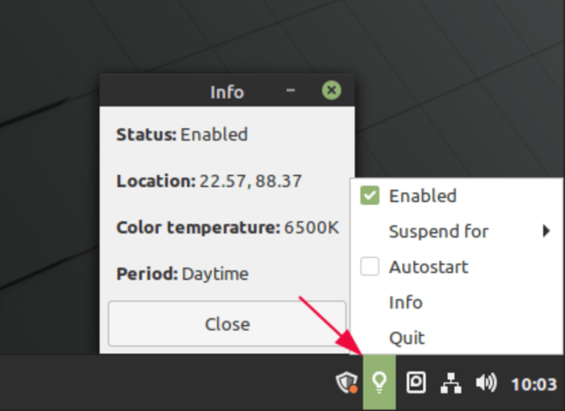 你可能想启用自动启动选项,以便它在你重新启动计算机时自动启动。它可能与 Ubuntu 20.04 LTS 的夜光功能不太一样,但是如果你不需要自定义时间表或微调色温的能力,那么它就足够好了。