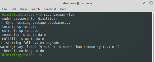 在滚动发行模式下,一切都是新鲜和前沿的。你不必把操作系统从一个版本升级到另一个版本,只要使用 pacman 命令,你会始终保持最新的版本。