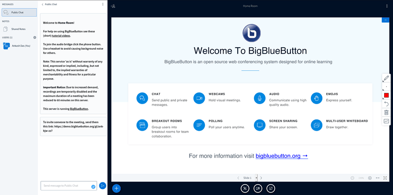 BigBlueButton 是一个有趣的开源视频会议方案,专门为线上学习打造。