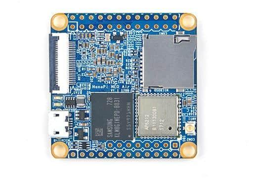 Nano NEO Air 的 WiFi/蓝牙版称为 NanoPi NEO Air,提供了 eMMC 存储和摄像头输入接口,提供了板载 USB 接口和板载网络接口。详情参阅 这里.