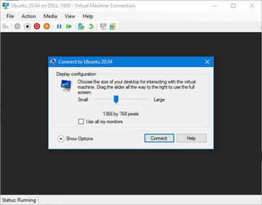 如果你在“虚拟机连接”窗口中看到这个对话框,你就会知道已经启动了一个增强的会话: