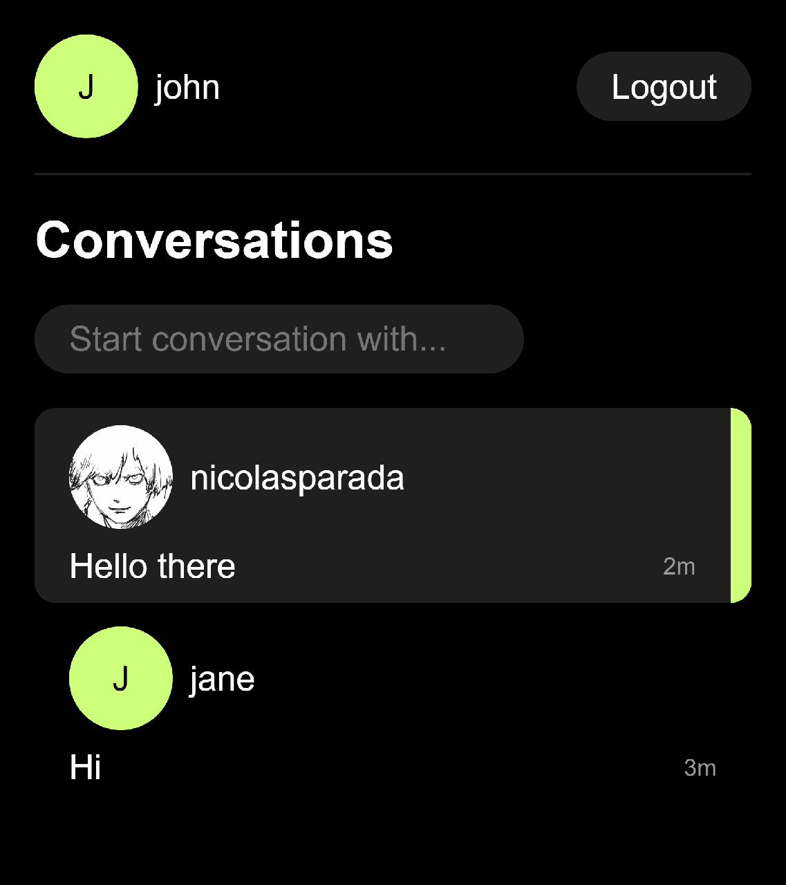 每个对话条目都包含一个指向对话页面的链接,并显示其他参与者信息和最后一条消息的预览。另外,您可以使用 .hasUnreadMessages 向该条目添加一个类,并使用 CSS 进行一些样式设置。也许是粗体字体或强调颜色。