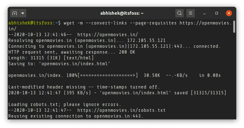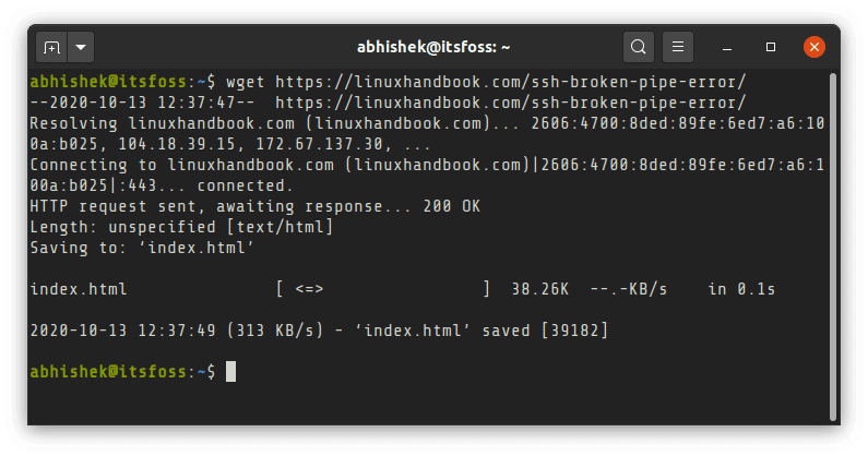你会注意到,网页在 wget 中几乎总是以 index.html 的形式保存。为下载的文件提供自定义名称是个好主意。