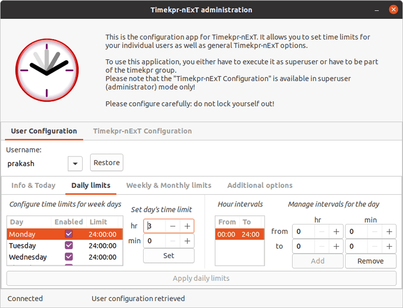 这里阅读关于使用 Timekpr-nExt 的更多信息的文档。
