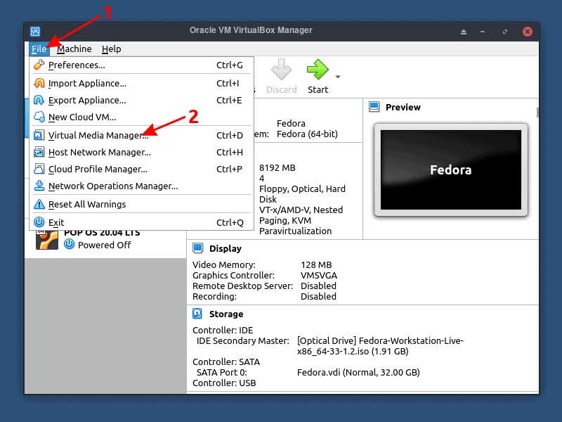 方法 1:在 VirtualBox 中使用虚拟媒体管理器