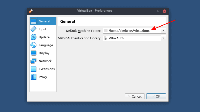 如果你不确定虚拟机的保存位置,可以在 VirtualBox 主页面点击 “Files -> Preferences” 或使用键盘快捷键 Ctrl+G 找到默认位置。