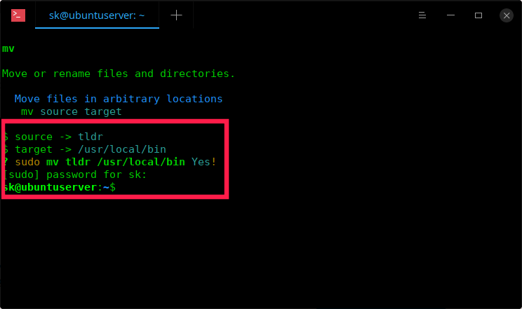 $ sudo mv tldr /usr/local/bin