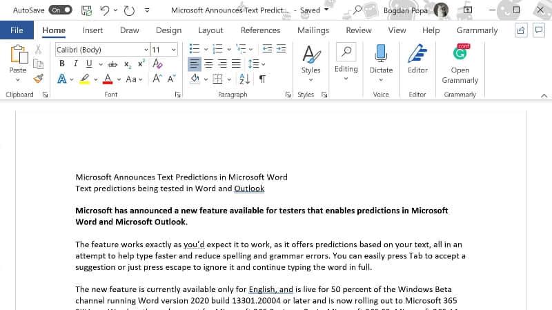 这种功能使用机器学习来预测作者将需要哪些单词来加快文档创建。当用户在撰写文档时,Word 会高亮显示灰度化的预测,可以使用 Tab 键接受建议,也可以按 Escape 键拒绝。该功能目前只支持英文,还处于内部测试阶段,预计下个月会发布。除了 Word,微软也将其用在 Outlook 中。