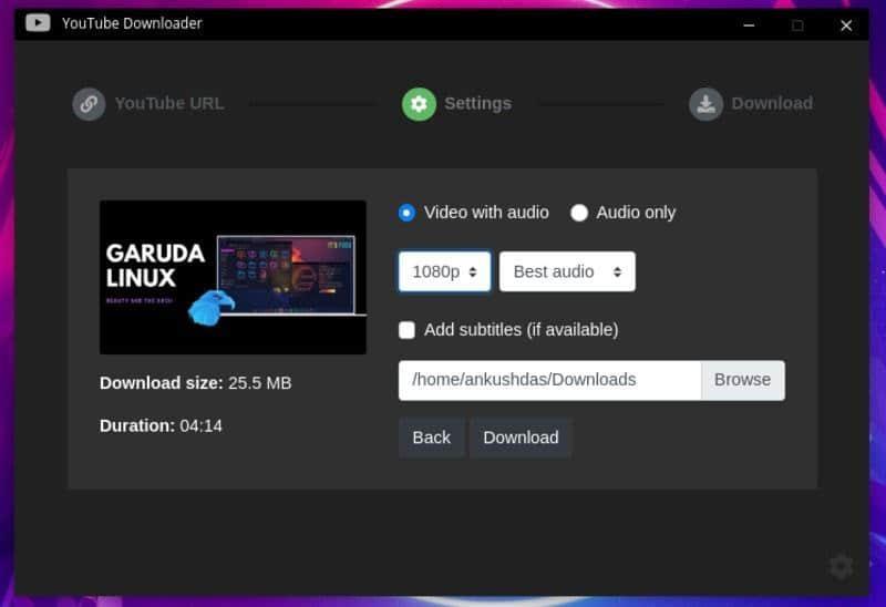 要做到这点,你需要在你的系统上同时安装 youtube-dl 和 ffmpeg。你可以轻松的添加多个 URL 来下载,还可以根据自己的喜好设置输出目录。