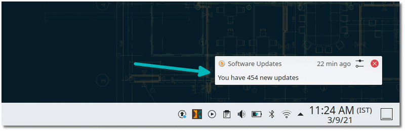 事实上,KDE 会在通知区通知你可用的系统更新。你必须打开 Discover,因为点击通知不会自动进入 Discover。