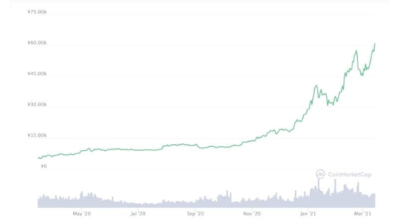 受益于金融市场的乐观情绪和美国总统拜登签署了 1.9 万亿美元的刺激法案,比特币从 2 月底创下前一个峰值后的暴跌中反弹。比特币 24 小时上涨约 6%,而一年前的今天才约 3850 美元,累计上涨了约 1400%。