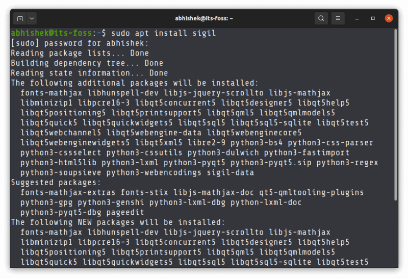 Sigil 有很多对 Python 库和模块的依赖,因此它下载和安装了大量的包。
