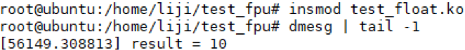 然后 insmod test_float.ko,观察 dmesg 的输出: