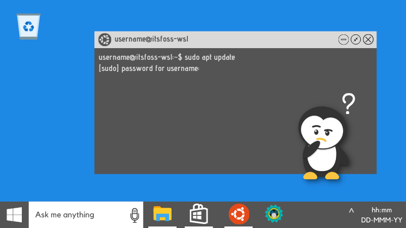 现在的问题是,如果你有一段时间没有使用它,你可能会忘记 WSL 的账户密码。而如果你要使用 sudo 的命令,这将成为一个问题,因为这里你需要输入密码。