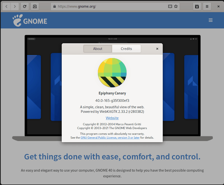 GNOME Web 的 Canary 版本允许你测试甚至没有出现在最新 WebKitGTK 版本中的特性。