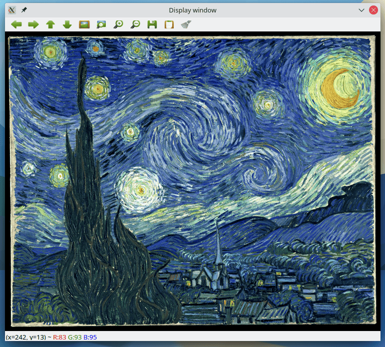 $ cp /usr/share/opencv4/samples/data/starry_night.jpg . $ python starry_night.py