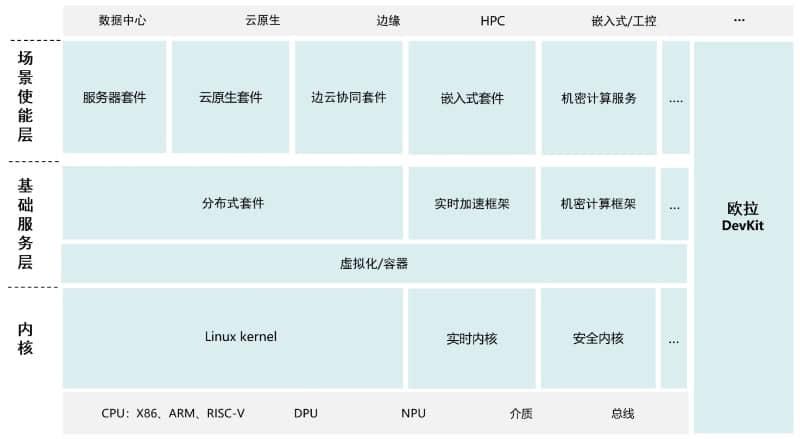 针对不同的硬件架构,欧拉在编程语言和架构方面还做了支持。