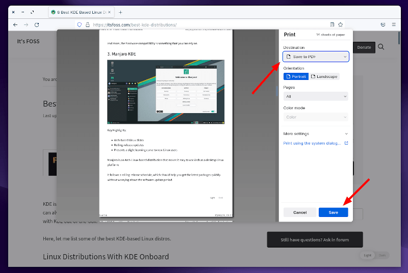 你可以选择使用每个 Linux 发行版上的网页浏览器(GUI),或者使用终端将网页变成 PDF 文件。