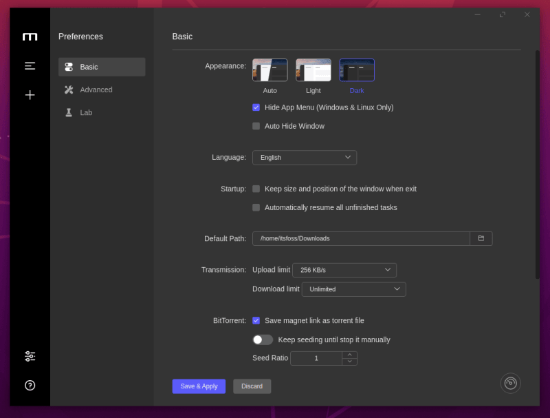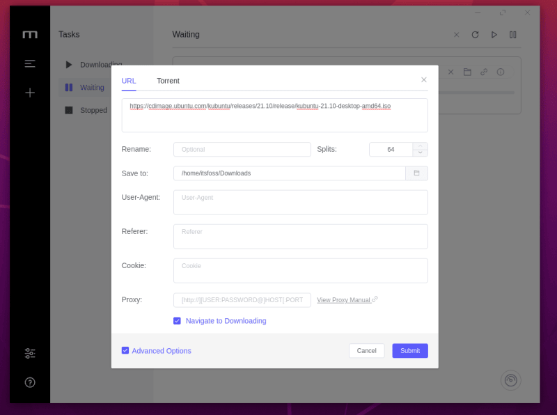 总的来说,它在处理 torrent 文件时工作得很好,也能从剪贴板上检测到下载链接。在下载文件之前可以直接访问高级选项,所以这应该是很方便的。