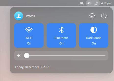 你还可以在状态栏中找到切换开关(类似于 iOS 或其他手机)来启用/禁用 Wi-Fi / 蓝牙和暗色模式。