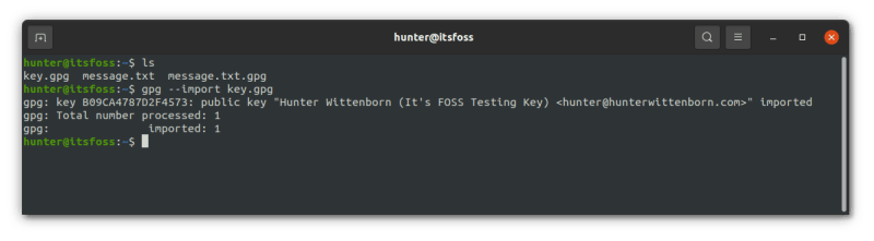 当然,这不是一个实际的用例,但这也不是本教程的目的。我的目的是让你熟悉 GPG 命令和功能。之后,你可以在现实世界中使用这些知识(如果需要的话)。为此,我将告诉你如何与他人分享你的公钥。