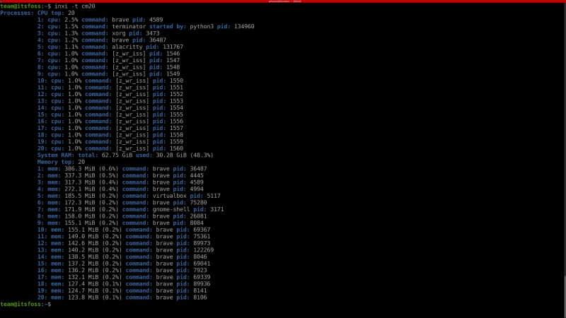 inxi 还可以用于监控系统中正在消耗 CPU 或者内存资源的进程。