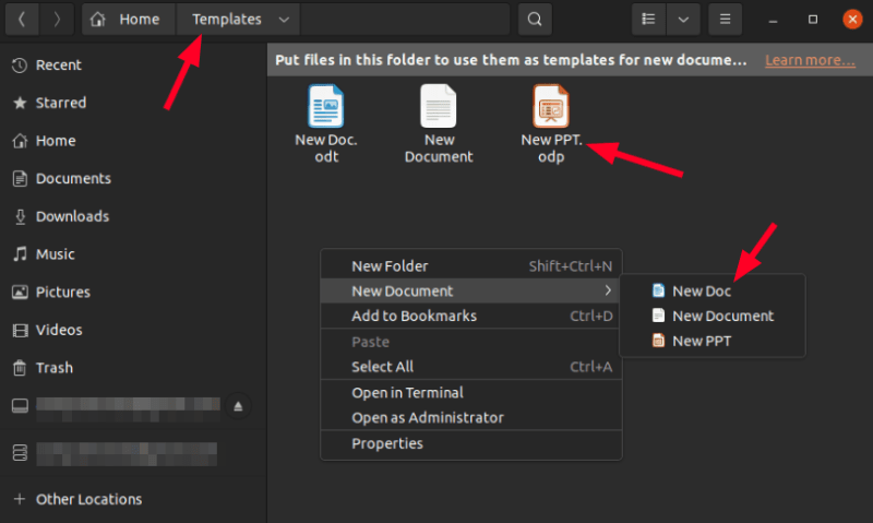 几年前,GNOME 删除了从右键菜单中创建一个新文档的功能。