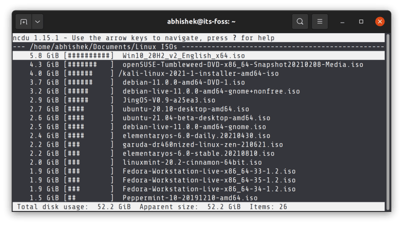 它是基于 ncurses 的,因此 “nc” 这个前缀被加到 du 中。此外,还有一个类似的 CLI 工具:gdu,也是一个 du 的替代品,因为是使用 Go 编写的,这使得它的性能得到了提升。