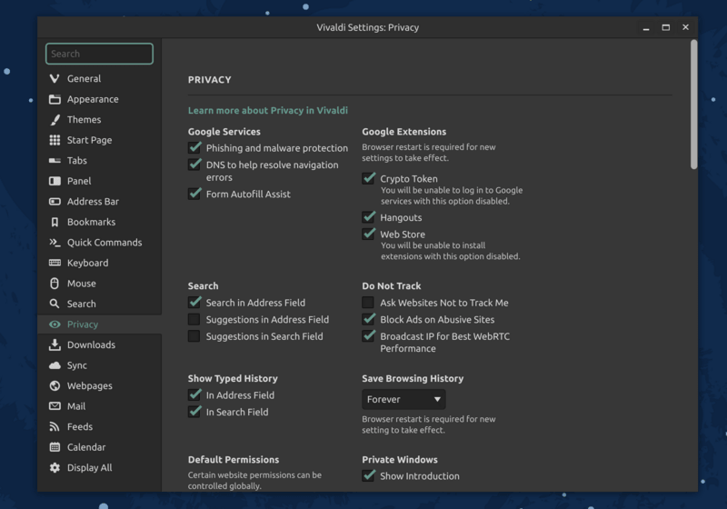 Vivaldi 专注于提供隐私友好型网络体验,就和 Brave 一样。它内置了原生的广告 / 跟踪拦截保护,以及专门用于自行调整体验的隐私设置。