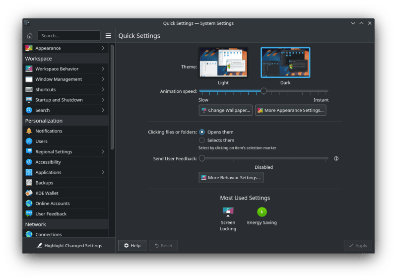 因此,在 UI 方面,KDE 与 GNOME 并没有明显的赢家,而是取决于你对功能或现代外观的要求。