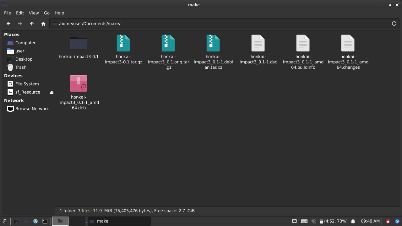 make $ cd honkai-impact3-0.1/ honkai-impact3-0.1 $ dpkg-buildpackage -us -uc