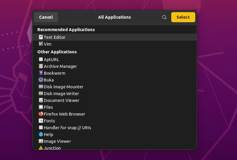 要在任何文件类型上使用它,你可以前往各自的文件属性,并为它改变默认的应用,如下图所示: